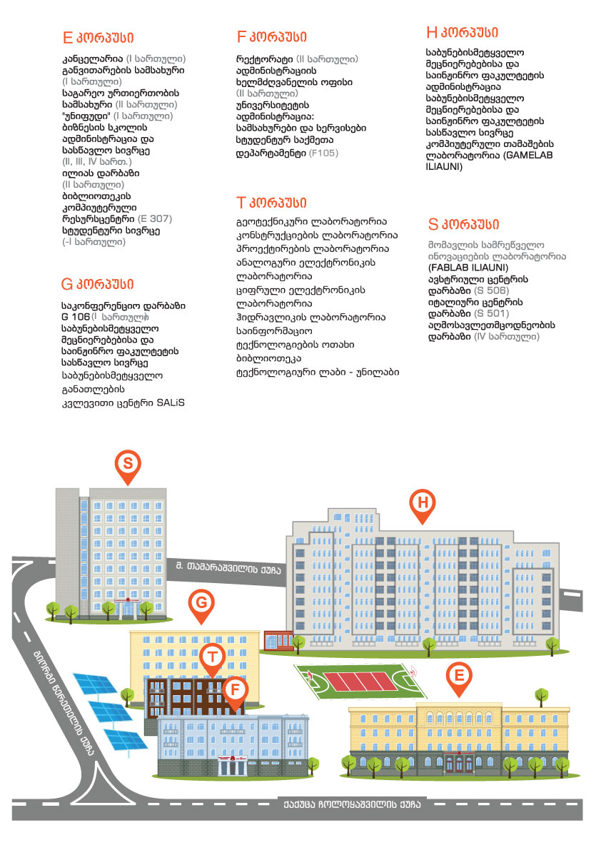 ილიას სახელმწიფო უნივერსიტეტის E,F,G,H, S,T კორპუსების ადგილმდებარეობა